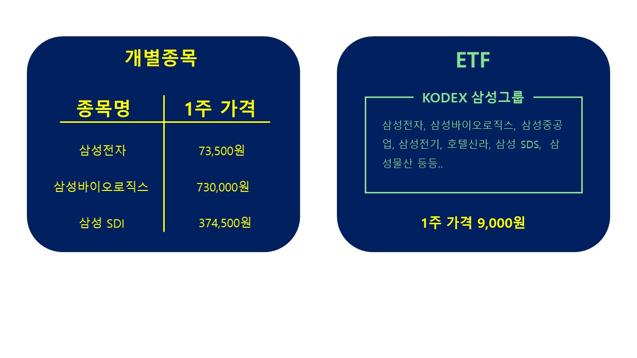하지만 ETF는 수십 가지 종목을 묶어놓았기 때문에