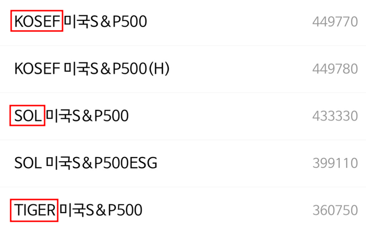 그래서 S&P 500 상품이라도 운용하는 증권사만 다른 경우가 있습니다.