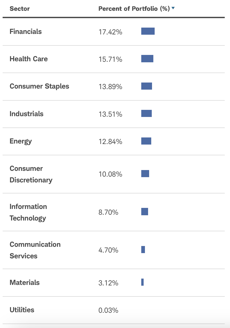예를 들어 정보기술이 호황이면 SCHD도 같이 수혜를 볼 것입니다. 하지만 부동산 시장이 호황일 때는 SCHD ETF안에는 리츠가 포함되어 있지 않기 때문에 그 수혜를 볼 수 없습니다. 반대로 불황일 때도 마찬가지 입니다.