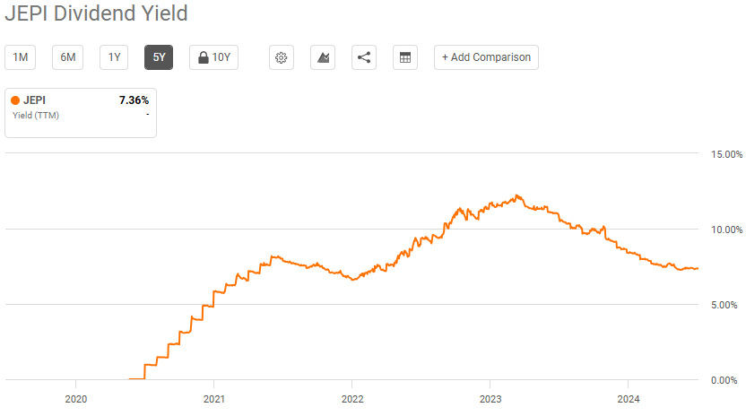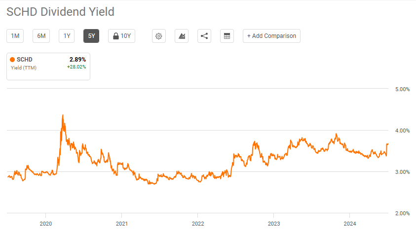 SCHD는 배당이 성장한다는 측면에서는 좋지만 배당률이 3%대로 그렇게 높은 배당률은 아닙니다. JEPI와 같이 7~10%대 배당률을 지급하는 ETF에 비하면 배당률이 높은 편이 아닙니다. 따라서 단기 투자자나 당장의 현금 흐름이 필요하신 분들께는 적합하지 않은 ETF입니다. SCHD는 장기투자를 통한 배당성장과 복리효과를 누리는 ETF입니다.