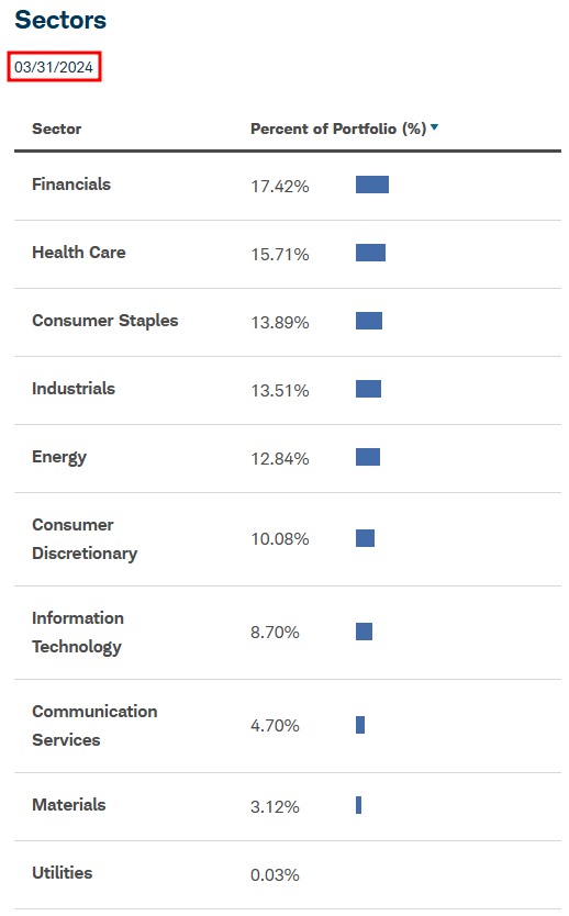 특이한 점은 리츠 기업이 포함되어 있지 않습니다. SCHD에 리츠가 포함되어 있지 않은 이유는 SCHD의 투자기준과 목적이 리츠 기업들과 다르기 때문입니다.